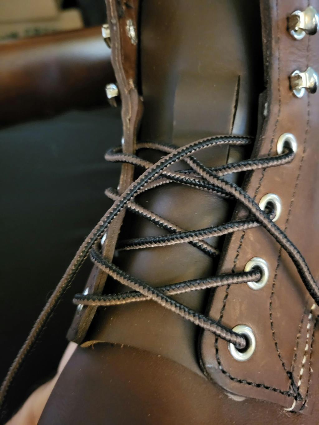 Remove the laces so you have full access to the original tongue. Now is a great time to condition and polish your boots!
